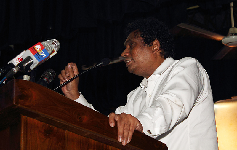 සමාජයේ යම් කිසි පාර්ශ්වයකට එරෙහිව අදහස් දක්වන අයට අද ලේබල් අලවනවා. ප්රජාතනත්්රවාදය වෙනුවෙන් පෙනී සිටිනවා කියන ආයතනත් එහෙම කරනවා. පුරවැසි සංවිධානය නම් සංවිධානය පසුගියදා ප්රකාශ කර තිබෙනවා. අද පාර්ලිමේන්තුවේ මහින්ද රාජපක්ෂ වෙනුවෙන් කඩේ යන හෙංචයියලා පිරිසක් සිටින බව. පාර්ලිමේන්තු මන්ත්රීවරුන්ට එහෙම කියූ ඔවුන් අද මටත් කියයි කඩේ යනවා කියලා. ජාතිවාදියා කියා හංවඩු ගහයි. ඇත්තටම මා කිසිදු දේශපාලන පක්ෂයක ක්රියාකාරිකයෙකු නොවේ. එහෙත් මනුෂ්යයා යනු උපතින්ම දේශපාලන දෘෂ්ටියක් ඇති සත්ත්වයෙක්. දේශපාලන දැක්මක් නිතැතින්ම අපටත් උරුමයි. එහෙයින් අද රට ගමන් කරන ආකාරය පිළිබඳ කම්පනයක් අපටත් තිබෙනවා. ඊට සාක්ෂිත් අප සතුයි. ඒත් වත්මන් විදේශ ඇමැතිවරයා පසුගියදා ප්රකාශ කර තිබෙන දේ අසත්යයි. ඒවා සාක්ෂි සහිතව සනාථ කළ නොහැකි දේවල් ලෙස තමයි ගන්න වෙන්නේ. හිටපු ජනාධිපති සතුව ඩොලර් බිලියන 18 ක විදේශ සංචිත තිබුණු බවට ඔහු ප්රකාශ කර තිබෙනවා. ඒත් 2014 වසරේ රටේම විදේශ සංචිත තිබුණේ ඩොලර් බිලියන 68 යි. මෙවැනි අසත්ය සහ සාක්ෂි සහිතව ඔප්පු කළ නොහැකි දේ පසුගිය ජනාධිපතිවරණයේ දී බහුල වශයෙන් සමාජගත කළා. ඒ බොරුව සමාජය පිළිගත්ත. කටට එන දෙයක් කිව්ව. ඒ දෙයම දැනුත් සිදු වෙනව. ඊට එක් උදාහරණයක් තමයි ඉන්දීය අගමැතිගේ පැමිණීම ගැන කියූ දෙය. ඉන්දීය අගමැතිවරයෙක් ලංකාවට එන්නේ වසර 25 කට පසුව බව ඔවුන් කිව්වා. ඒත් 2008 වසරේදී මන්මෝහන් සිං ශ්රී ලංකාවට ආවා. එහෙනම් අවුරුදු 25 කට පසුව නොව අවුරුදු 7 කට පසුවයි එවැන්නක් සිදු වුණේ. මෙවැනි බොරු පවසන්නේ ඇයි? ඒ වගේම පසුගිය වෙසක් දවසේ ඇමරිකානු රාජ්ය ලේකම් ජෝන් කෙරී ලංකාවට ආවා. අවුරුදු ගණනාවකට පසුව ඇමරිකානු රාජ්ය ලේකම් කෙනෙක් ලංකාවට පැමිණි බවයි විදේශ ඇමැතිවරයා කිව්වේ. ඒත් එය අසත්යයක්.