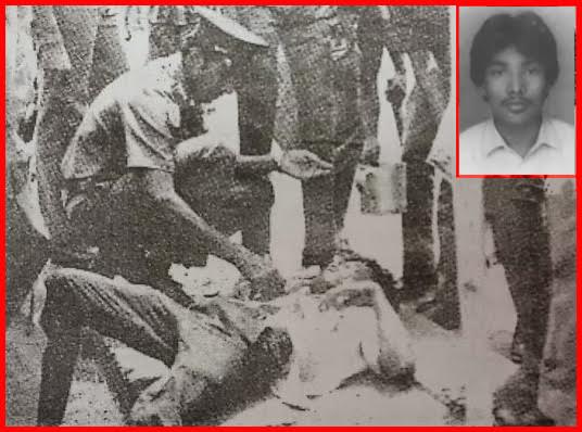 ඉන්දු-ලංකා ගිවිසුමට එරෙහිව 1987 ජුලි 28වැනිදා පැවති විරෝධයේදී ප්රථම වරට මියගිය මොරටු සරසවියේ ඉංජිනේරු සිසු ක්ලිෆඞ් පෙරේරා අවසන් හුස්ම හෙළු අන්දම(පහළ) සහ ඔහුගේ ඡායාරූපය(ඉහළ)
