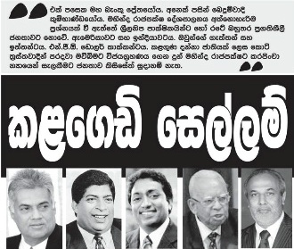 තැටිය රත්වුණු වේලේ රොටිය පුච්චාගන්නට සිතුවේය. දින 168ක් තුළම හිඟන්නාගේ තුවාලය මෙන් රොටිය විකුණාගෙන කෑමට සිතුවද අවසානයේදී රොටිය කරවිය. ‘යහපාලන’ බොරුවෙන් සැමදා රට රැවටිය නොහැකිය. පොකුරු ගම්මාන 2,500 සහ බස්නාහිර පළාත නගරයක් කිරීමේ යෝජනා දේශපාලන ඡුන්ද කඩා ගැනිමේ කලගෙඩි සෙල්ලම් පමණි. ජනමත විචාරණය 1982දී පැවැත්වුයේ මේ කලගෙඩි සෙල්ලම් එජාපයට හොදටම හුරු පුරුදු බැවිනි. වසර 1815දී සිදුවු වරද නිවැරදි කිරීමට බොහෝ කලක් සිටීමට සිදුවිය. වසර 2002 සිදුවූ වරද නිවැරදි කිරීමට වසර 2ක් ගතවිය. ඉකුත් 2015 ජනවාරි 8 වැනිදා සිදුවූ වරද නිවැරදි කිරීමට මාස 7කින් හැකිවීම පූරුවේ පිනකි. ඒ සඳහා කල් යල් බැලිය යුත්තේ අගෝස්තු 17වන තෙක් පමණි