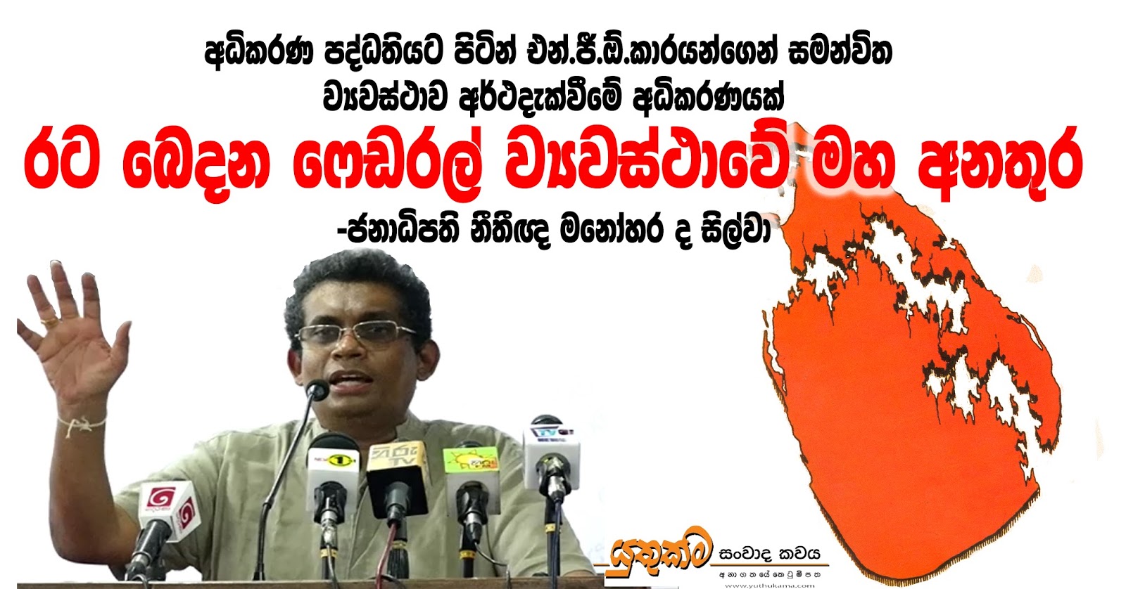 රට ෆෙඩරල් කර කෑලි වලට බෙදන ව්යවස්ථා යෝජනා සමගම එන අරුම පුදුම යෝජනාවක් පිළිබඳ ජනාධිපති නීතීඥ මනෝහරද සිල්වා මහතා පසුගියදා කරුණු හෙළිදරව් කළේය.