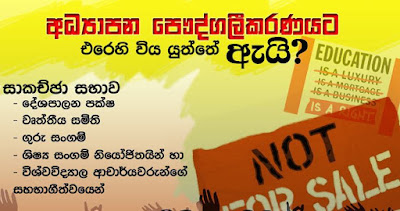 ඒ නිසා අපි වැඩිමනක් වශයෙන් ඉල්ලන්ට ඕන. නිකන් මේක පෞද්ගලීකරණය කරන්න එපා කියලා විතරක් ඉල්ලලා මදි. පෞද්ගලිකකරණය නොකරනවා විතරක් නෙවෙයි. අධ්යාපන සඳහා සෑම සමාජීය ධාරාවකටම ඉඩදෙන්න. ඔවුන්ට අවශ්ය වන ප්රතිපාදනයන් සලස්වන්න. අන්න එහෙම කළොත් විතරයි සැබෑ අධ්යාපන අයිතියක් ලැබෙන්නේ.